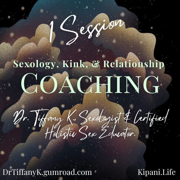 This is for one 60 minute talk-based coaching/mentoring session with Dr. Tiffany K., Board Certified Sexologist & Certified Holistic Sex Educator (audio call via phone or Zoom). This is great for one-off issues, a few questions about a particular subject, general feedback, or asking questions you have always wanted to ask about sex, kink, or relationships.